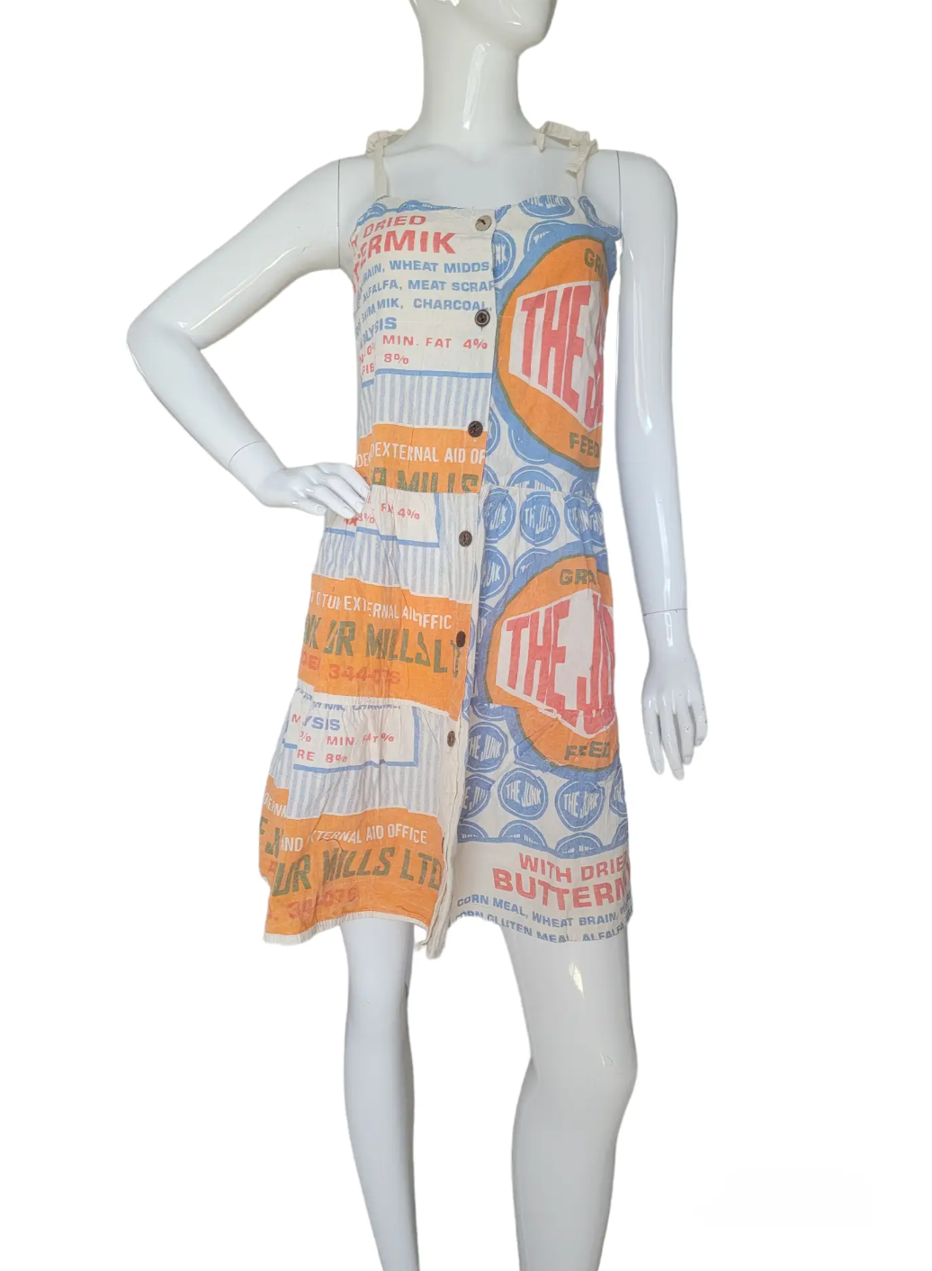 Reproduction of Flour Sack Cotton Short Tier Dress/Top with Tie Straps- Junk Buttermilk