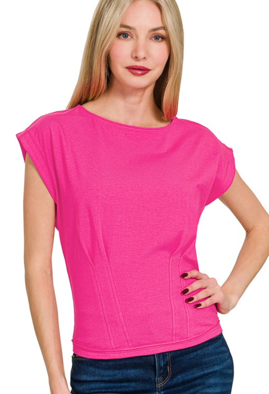GATHERED WAIST ROUND NECK TOP
