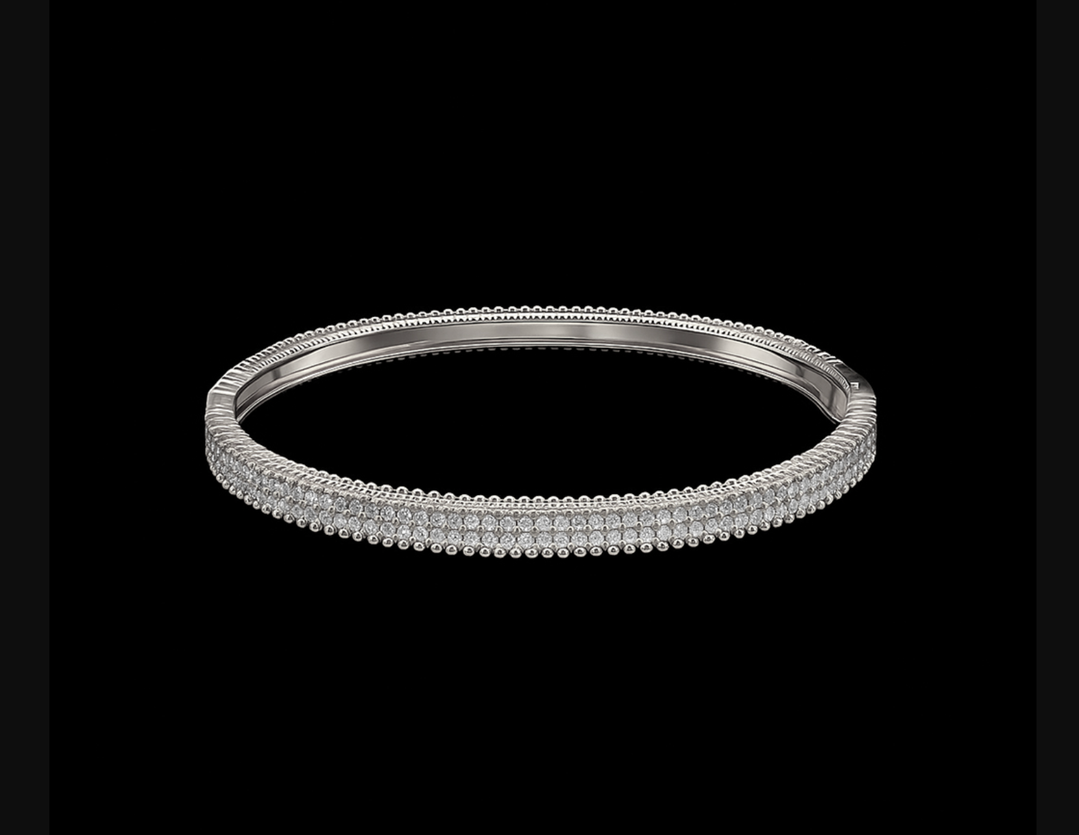 Pave hinge bracelet with CZ's that look as real and brilliant as diamonds in silver plated cuff.