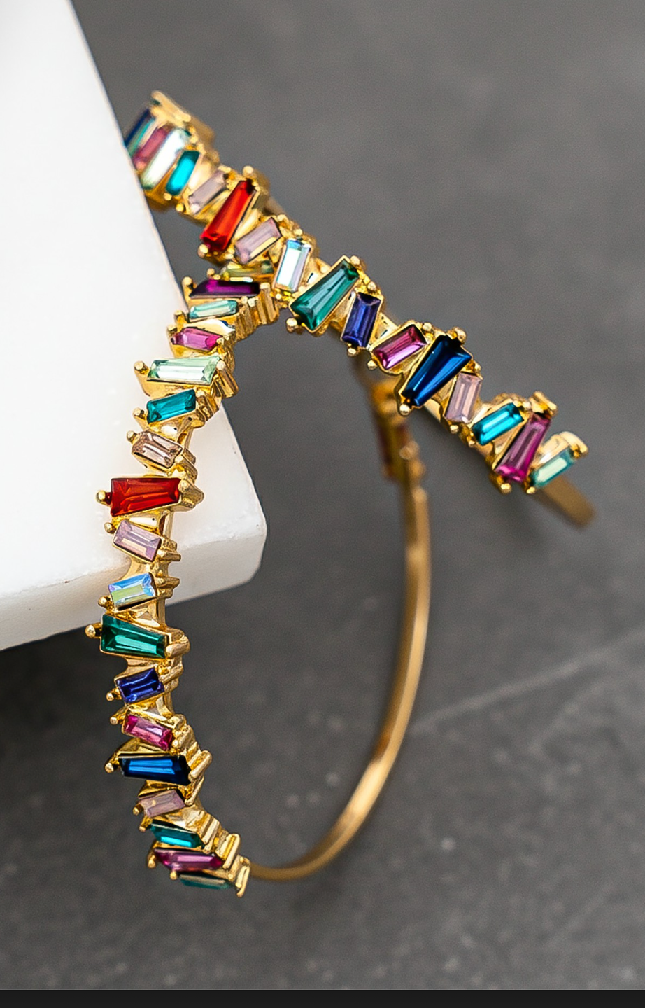 RAINBOW BAGUETTE HOOP EARRINGS